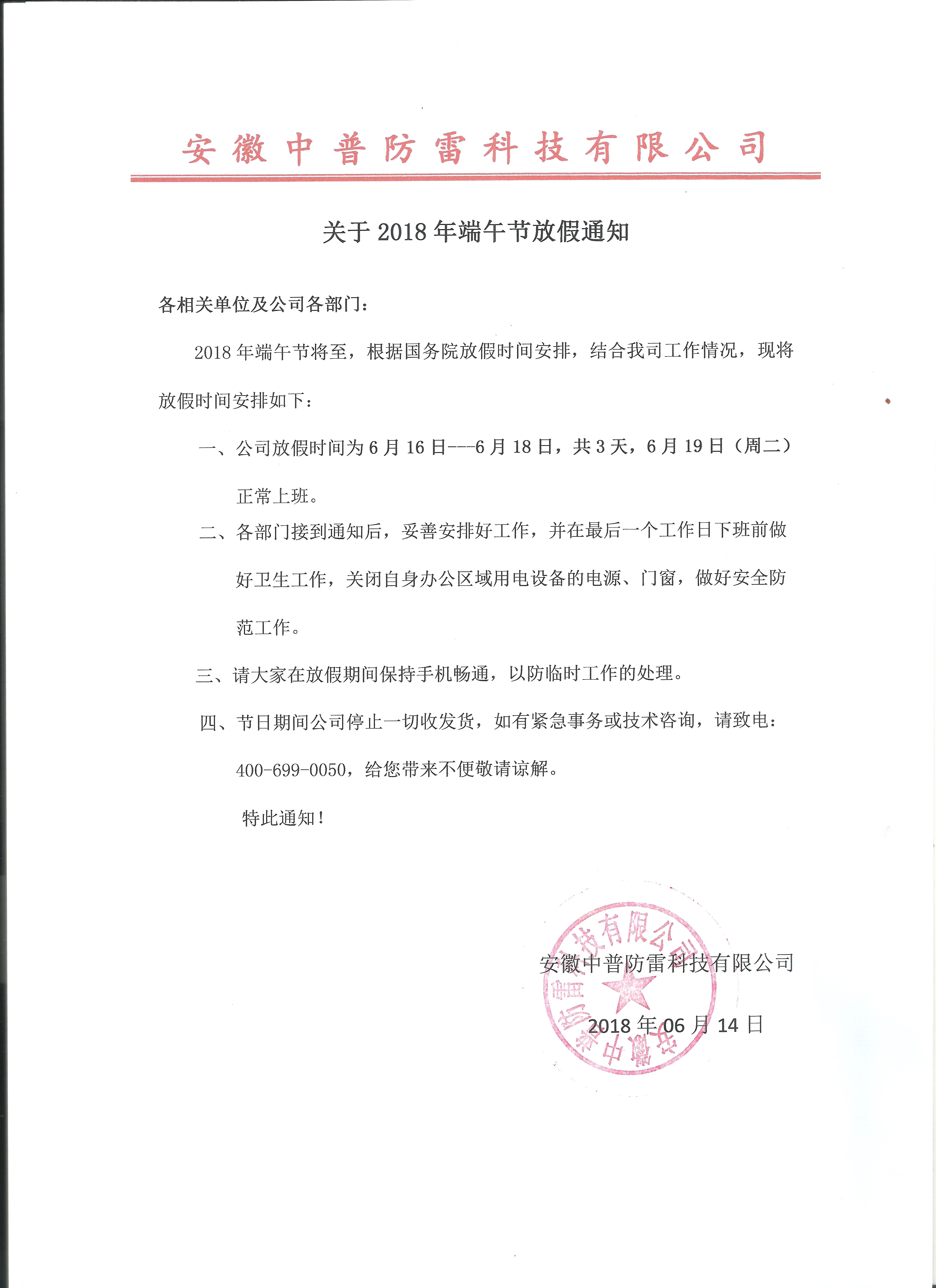 安徽中普防雷“關(guān)于2018年端午節(jié)放假通知”