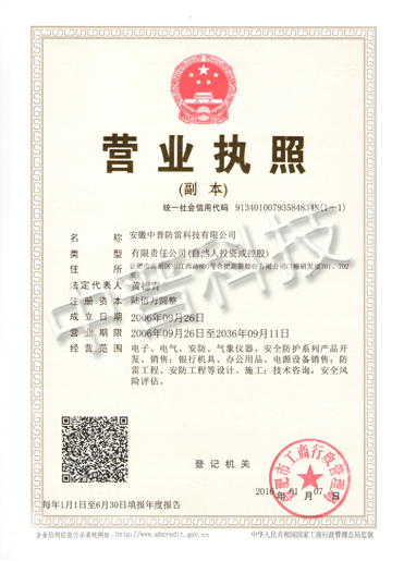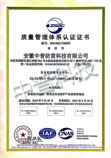 中普防雷質(zhì)量認(rèn)證體系證書