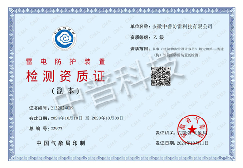 雷電防護(hù)裝置檢測(cè)資質(zhì)證