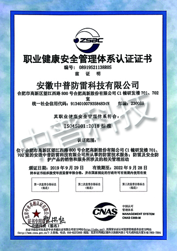 HSE 職業(yè)健康安全管理體系認(rèn)證證書